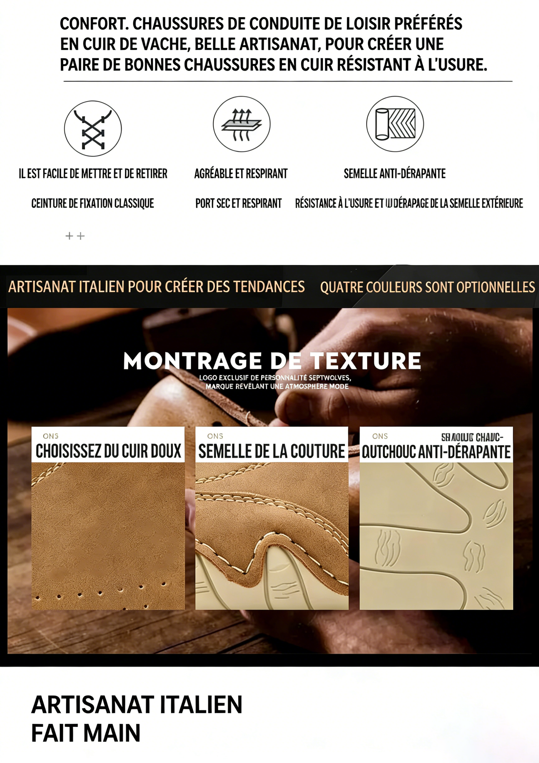 • 100% cuir véritable