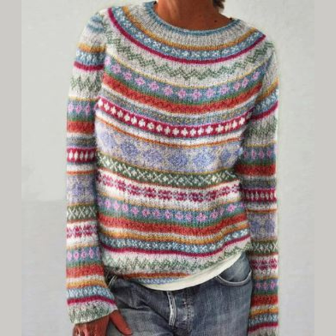 - Motif tricot Fair Isle rétro dans des tons doux et colorés.